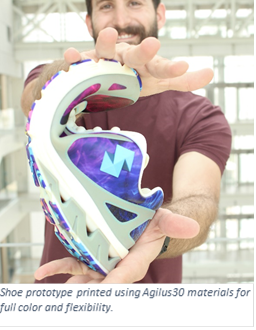 Full-color prototypes that look and feel like a final product are time-intensive, expensive and have previously been virtually unachievable. Agilus30 Colors takes the existing rigid materials and extends them to include flexible, full-color modeling capabilities with exact shore value definition ability. This allows designers to achieve full-color prints and prototypes that look, feel and flex like the final product, all of which are key to achieving designs with true realism.