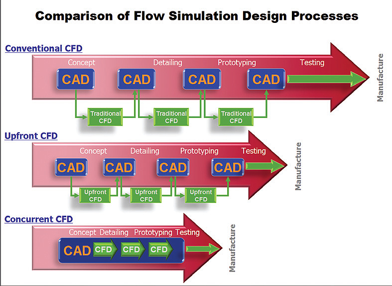 过去,CFD的使用集中在一种相对较少的行业,如汽车,航空航天和发电,生产高价值产品,其中流体流动对性能显而易见和重大影响。这导致了许多CFD仅为这些高价值产品增加了价值的信念。实际上,流体流动对各种产品的性能产生了重大影响 - 可以通过分析显着改善的性能。与流体或气体相互作用的每个产品以及涉及流体或气体的每个生产过程是潜在的分析主题。这有助于解释为什么今天CFD正在用于将产品改善为游泳池,厕所,草坪喷头,燃气表,生产印刷系统,磁盘驱动器和滤油器。