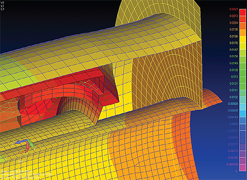 压力结果使用Nei Nastran静态模拟计算。从先前稳态热仿真的结果负载
