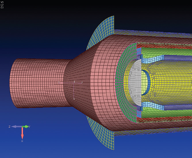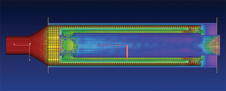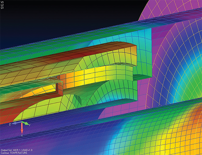 使用初步热流计算的结果,进行了两种模拟:Nei Nastran传热模拟以确定热交换器上的温度梯度,以及结构模拟,以确定热伸长率引起的应力和应变。