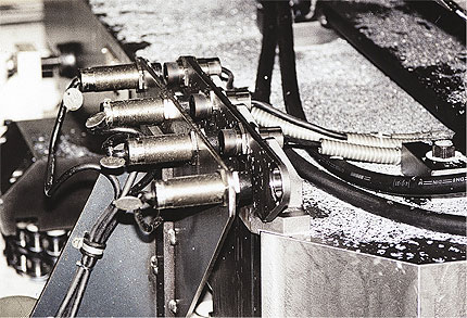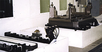 MTU Friedrichshafen加工中心的工件位置感应使用远程电感耦合器。最多16个传感器检测位置,并根据某些特征识别要加工的部件。装载后,托盘进入加工区域。