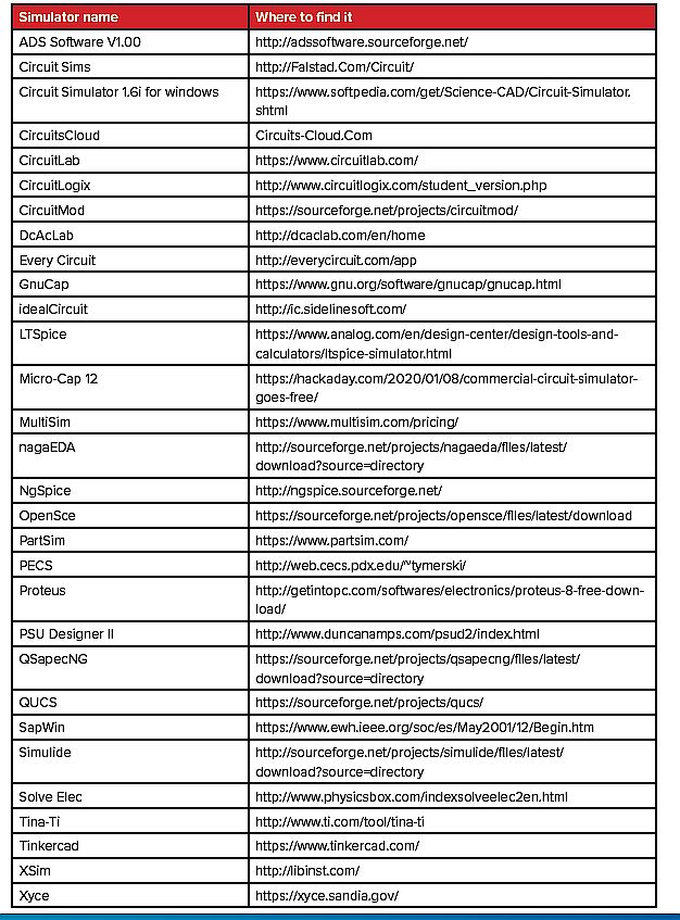 在帮助找到最有用的包the sea of online debris, we surveyed the field of free circuit simulators mentioned in posts and forums. We came up with 30 packages and online apps that seemed to offer benefits of use in actual circuit work.