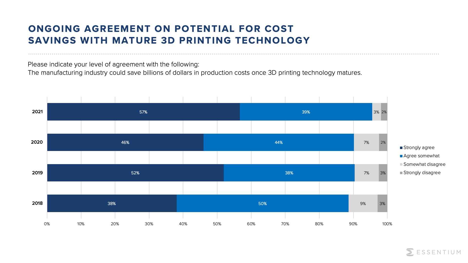 Essentium的首席执行官Blake Teipel博士说:“研究表明,制造商越来越认识到大规模工业3D打印具有巨大的经济价值,即使他们在该技术方面获得了更多的专业知识。我们正在一个开放的生态系统中与我们的客户和合作伙伴密切合作,以确保AM是一个长期的游戏规则改变者,帮助制造商实现更高的生产效率,更大的定制化,并缩短上市时间。”