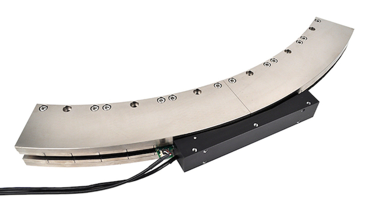 H2W开发了一种无壳弧分段无框无刷力矩电机,具有低惯性动圈组件,用于高角加速度应用。TWR-070-410-1150-3PH是一种旋转三相无刷电机,也被称为旋转伺服电机,是一种直接驱动电机,适用于有限或无限,闭环伺服,旋转运动的应用。它可以产生连续/峰值扭矩480英寸。-lb (53 Nm)/ 1,440 in。磅(159海里)。它被设计成70°旋转,并在20英寸的套管上工作。(500毫米)半径,但附加的模块化磁铁轨道(33°每个)可以增加角位移。它能够精确的位置,速度和加速度控制时,加上一个旋转编码器的位置反馈。