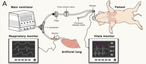 The researchers first tested their setup on a ventilator split between a pig and an artificial lung. By changing the properties of the artificial lung, they could model many of the changing conditions that might arise in patients; they also showed that the ventilator settings could be adjusted to compensate. They later showed that they could ventilate two animals on one ventilator and maintain the necessary airflow to both.