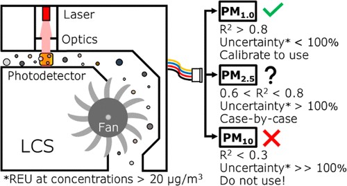 To extend the reach of PM measurements, a number of lower cost PM sensors are continually introduced. In a recently published paper, researchers from Colorado State University evaluated the performance of several low-cost sensors for monitoring particulate matter air pollution. They stated that most low-cost PM sensors operate on the principle of aerosol light scattering, also called nephelometry. In this sensor design, a fan draws an air sample into a small housing, the PM passes through a focused beam of light, and a photodetector measures the intensity of the light scattered by the particles. As a result of their study, they concluded that low-cost aerosol sensors cannot discriminate particle size accurately enough and only report linear and precise measures of aerosol concentration in the accumulation mode size range.