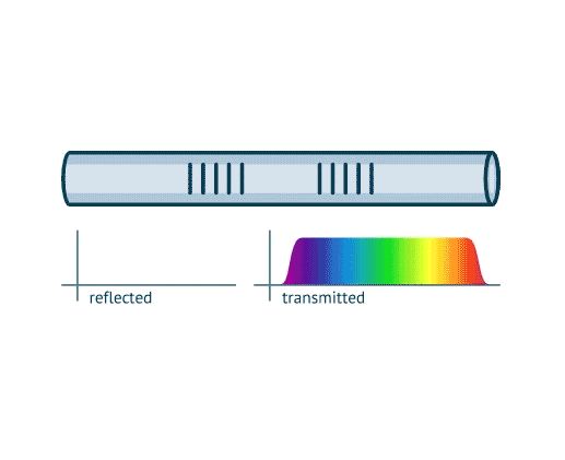 当宽带光束在光纤中传输时,光纤布拉格光栅只反射特定波长(布拉格波长),而传输所有其他波长。反射波长随应变、振动、加速度和光纤温度等参数的变化而变化(图3)。