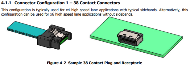 SFF TA 1026规范提供了若干详细的布线解决方案,主要取代了较旧的PCIe 2.0和PCIe 3.0标准内部Oculink连接器和电缆组件。内部USB 4.0类型C电缆也已在大多数新应用程序中替换Oculink使用,例如使用服务器固件移植。