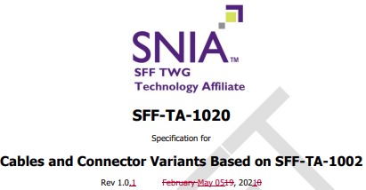 The 11thgeneration INCITS T10 group’s most recentSAS.5.0规范,以及Genz和OCP NIC 3.0规范,建议使用SFFTA1002要么SFFTA1020connectors and cables. This is a somewhat rare agreement between several organizations about the application of the same connector specifications. This also occurred with the ubiquitous Type C connector with consumer and prosumer devices.