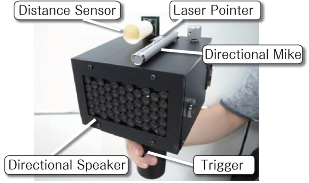 Over a decade ago researchers demonstrated that a device called the SpeechJammer could be used to disrupt people’s speech. In the protype, the speech of the human target is received and then sent back to them with a delay of a few hundred milliseconds. While involving no physical discomfort, it immediately causes the target to stop speaking and does not involve anyone but the speaker. This phenomenon (called Delayed Auditory Feedback (DAF)) was implemented in two prototype versions by combining a direction-sensitive microphone and a direction-sensitive speaker. It proved effective in disturbing the speech of a specific person. With the increasing number of inconsiderate speakers, this could provide an interesting solution.