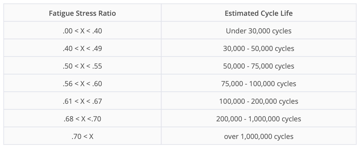 The fatigue stress ratio is then used to determine the spring’s estimated cycle life.