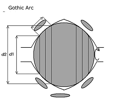 因为哥特式弧线的接触面积差异更大,球的内部部分必须比外部旋转得更快,这就造成了滑动和结果