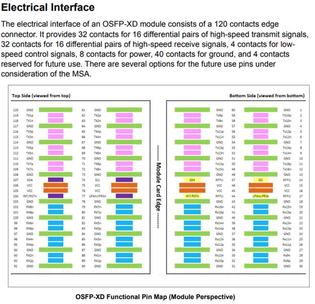 下面是OSFP-XD的pinout: