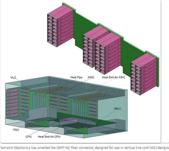 被发现发布了一个新的光纤连接器产品系列,为具有许多OSFP连接器端口的高端交换机设备提供了增强的移植选项。新的OSFP-VLC连接器专为垂直线路卡连接而设计。