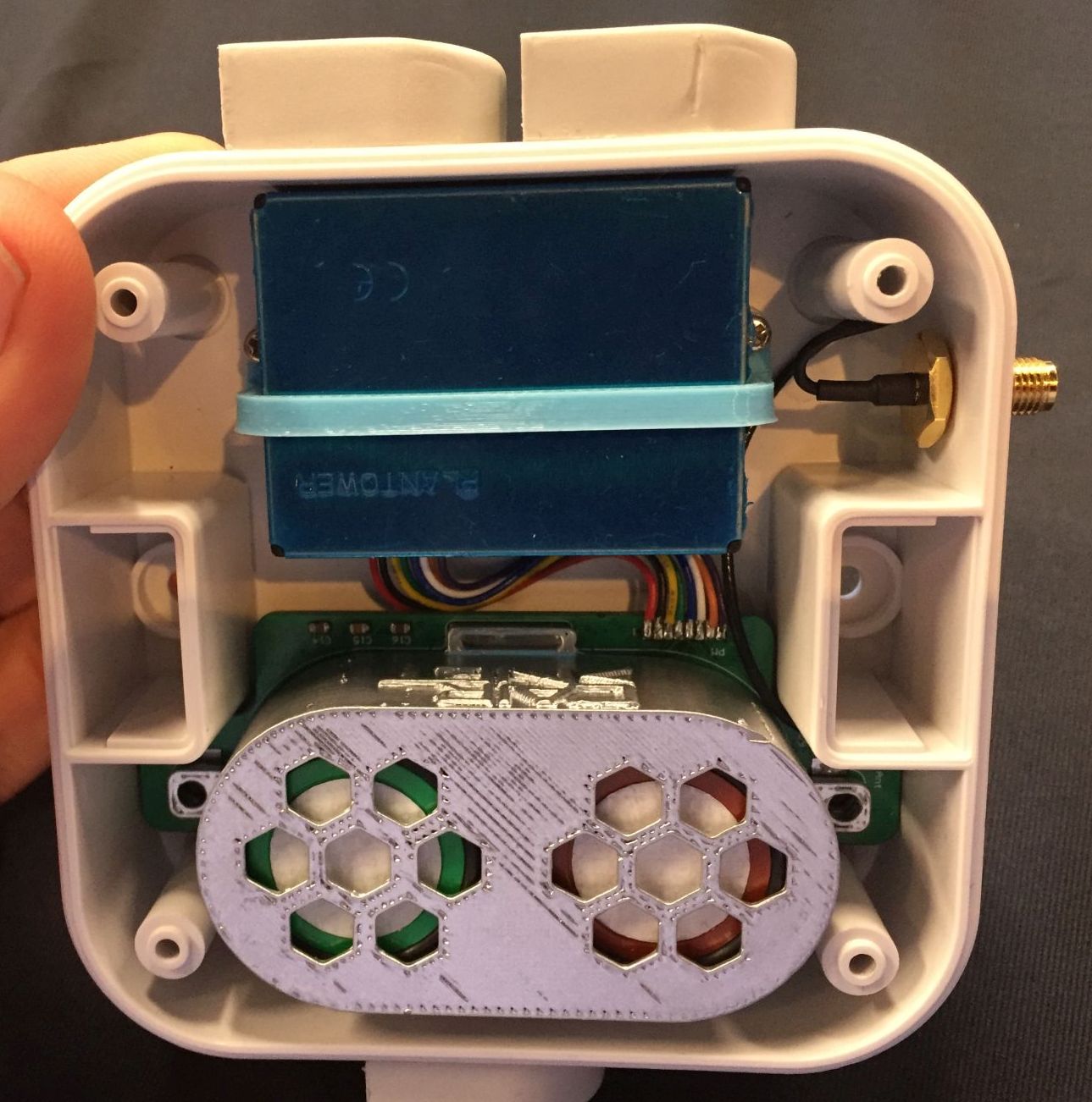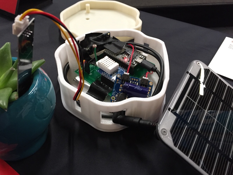 BerrySmart在地面,一个环境光传感器(光致抗蚀剂)和温度/ RH传感器。微控制器是开源的,因此农民可以在需要添加传感器,例如pH。它基于Arduino,其中几个设备可以驻扎在一个农场周围,通过Wi-Fi网状网络连接回农舍。在那里,农民可以使用软件仪表板来控制浇水。从太阳能电池板充电的电池运行的模块。这张照片显示了比赛决赛的Berrysmart模块。有关概述,请参阅下面的视频。