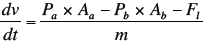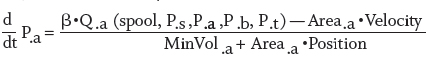 系统的详细模型必须考虑气缸或电机,阀门,蓄电池,泵和连接管道。这些组件的动态信息的信息被写为一阶微分方程的系统,其表达参数的变化率作为该参数和其他参数的函数。模拟以用于加速度或角度加速度的公式开始,这取决于致动器是否是汽缸或电动机。然后随着时间的推移集成加速度以提供时间的速度和位置。气缸和电机加速的方程是: