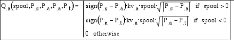 请注意阀芯位置、所有压力、执行机构位置和速度都在每时每刻都在变化。这里有一个关于位置,速度,加速度,四个压力,蓄能器,和泵的微分方程。如果多个轴由同一个泵和蓄能器提供动力,则应将附加轴的方程也添加到微分方程系统中。龙格-库塔(RK4)等方法可用于计算参数在未来将如何变化。