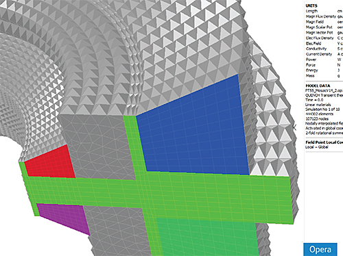 COBHAM技术服务在项目期间的工作导致牛津工具的三个主要功能。最基本的进步是在FEM算法中,将磁铁的3D计算机设计模型划分为较小的连接元件以允许数值解决方案。现在可以使用“马赛克”棱镜,六面体和金字塔形元素形状(以及先前可用的四面体元件)的“马赛克”混合物来啮合模型,以提高模拟解决方案的准确性。该镶嵌啮合也增加了随后的耦合多物理瞬态热和涡流模拟的速度。在每个步骤中组装非线性热方程在更有效,并且可以用更少的元件捕获导电变压器中的涡流皮肤效果。还配置了瞬态热和电磁模拟,使得它们可以在不同的处理器上并行运行,以进一步提高执行速度。
