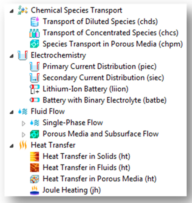 • Comes with built-in analysis types for simulating operating conditions, electrode configurations, structures and dimensions, materials, and chemistry