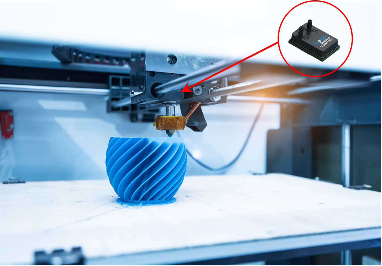 The ND210 is an ideal pressure sensor for 3D printers, as it supports differential pressures as low as 62.5 pascal to as high as 2500 pascal – ensuring high accuracy for a wide array of materials and structures. In addition, its position insensitivity will not impact accuracy by any movements in the arm or nozzle.