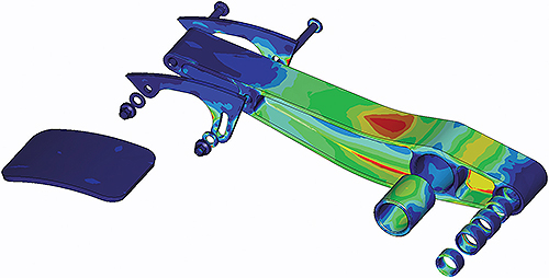 Creo模拟提供了对结构和热仿真的分析师的需求。这里是铸造的融合应力结果。