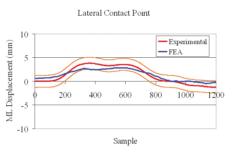 显示了有限元分析预测膝关节假体腓骨和胫骨外侧接触点和医学接触点结果的准确性。