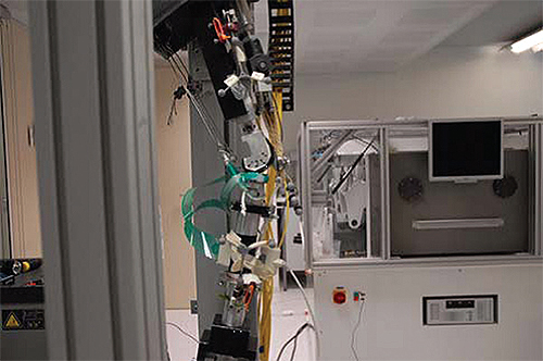 一个测试平台其中安装了膝关节假体,以验证Abaqus有限元分析结果。膝盖中心测试