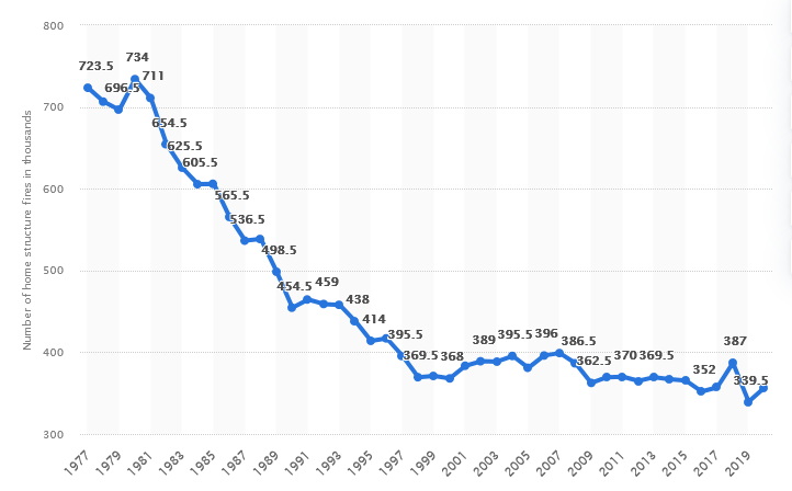 为什么不呢?它们便宜、可靠、有效。虽然许多关于房屋火灾的统计数据和有意义的历史数据难以评估,但这类火灾的总体趋势肯定是下降的(图1).