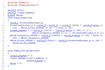 图3:16位定点PID控制器的C-code实现。该代码是从PID控制器块生成的。