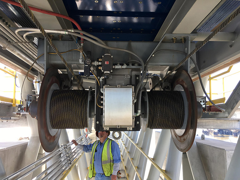 McCready快速指出NORD驱动系统电机占用大数功劳上举例子中,每个单元都附着紧凑型二叉驱动器上,即专为NORD/ILS设计带集成制动式驱动器,能例行提升1.8万磅以上,每天24小时,每年365天加5:1绞索安全因子