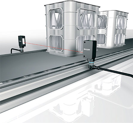 通束光电传感器对在典型的处理线上计数容器。
