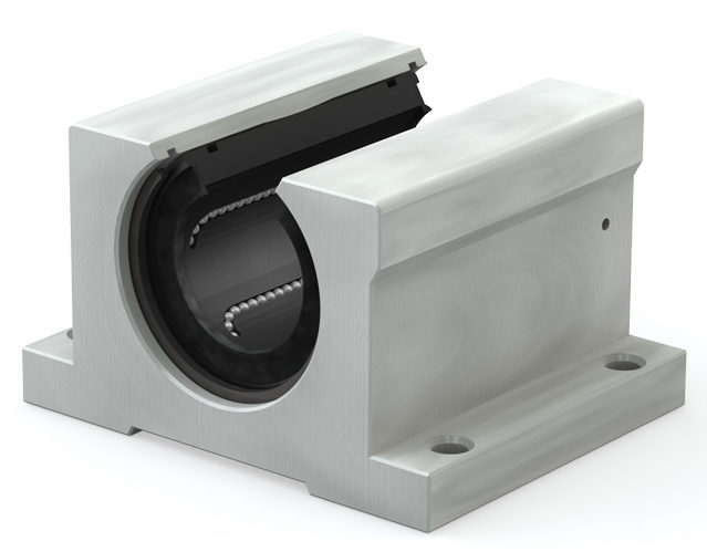 线性滚珠轴承和圆形轴通常用于要求易用性和简单安装要求的应用中。例如,在介绍的轨道指南需要沿其长度的全部支撑,线性滚珠轴承或衬套可用于许多仅在其末端支撑的轴的应用中。但是,与介绍的轨道指南或轴承不同样条轴,线性滚珠轴承没有内置机构可防止它们绕轴旋转,因此通常将它们安装在轴承壳中。该外壳或枕头块也有助于将外部负载安装到轴承上。