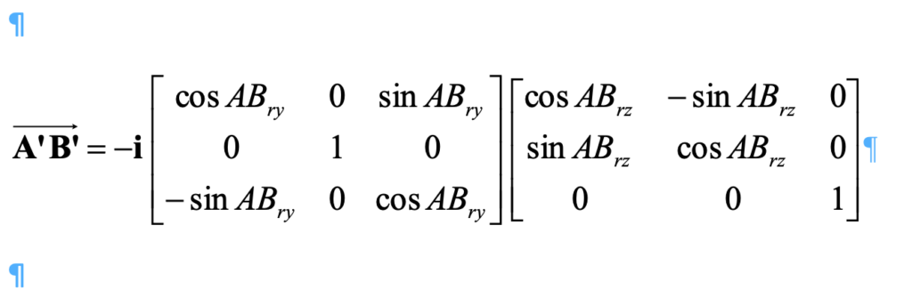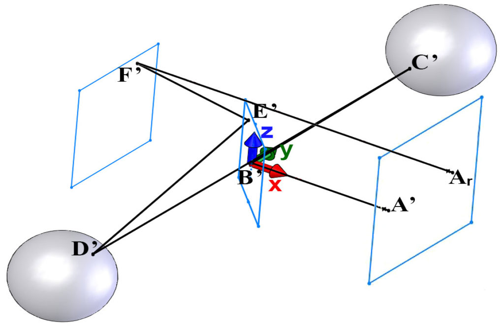 Vector geometry can be used to find each of the points in the path in turn. For example, the direction of vector A’B’ is given by applying rotation matrices to the nominal direction vector: