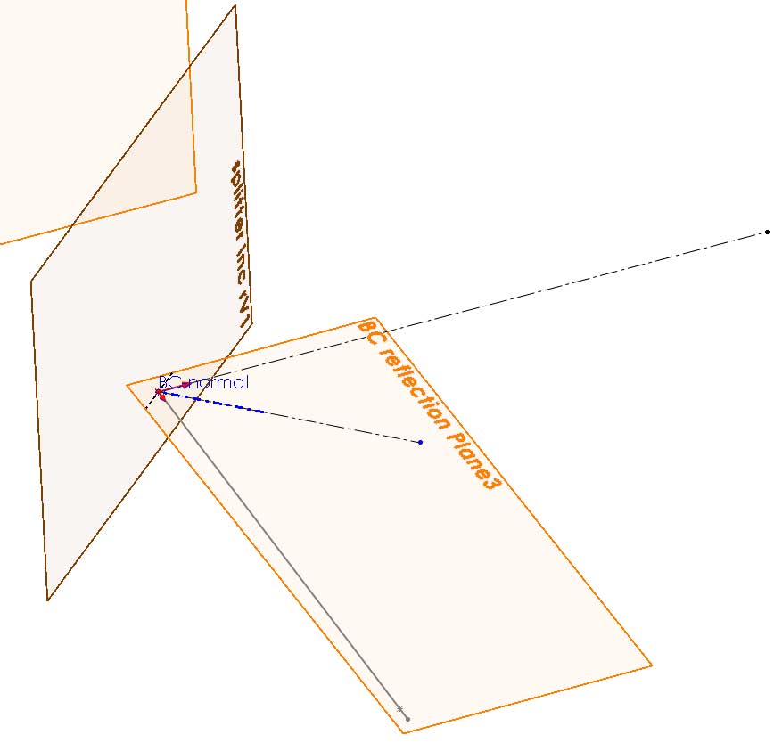 - Create asurface normal vectoron the reflection surface, using a 3D sketch containing a single line.