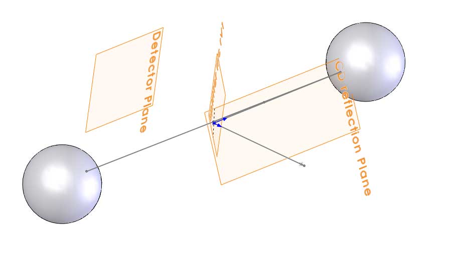 The first stage in creating the SolidWorks validation model was to create geometric elements for the spheres, beam splitter, laser source and detector. The spheres were modeled as solids, the beam splitter and detector were modeled as reference planes.