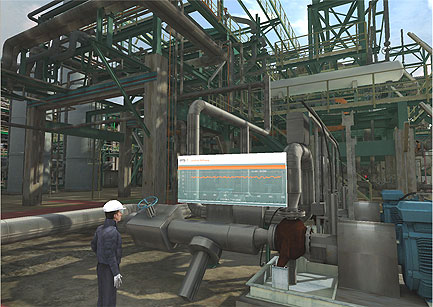 学员戴上立体耳机,进入沉浸式环境,在设施中自由移动,看到他们在实际工厂中看到的东西。由于软件以60帧/秒的速度渲染虚拟环境,这比传统的非实时渲染要快。此外,EYESim增强现实技术将虚拟植物图像与来自资产管理或其他应用软件的数据屏幕相结合,提供技术或程序的额外细节,可以增强整体培训体验。