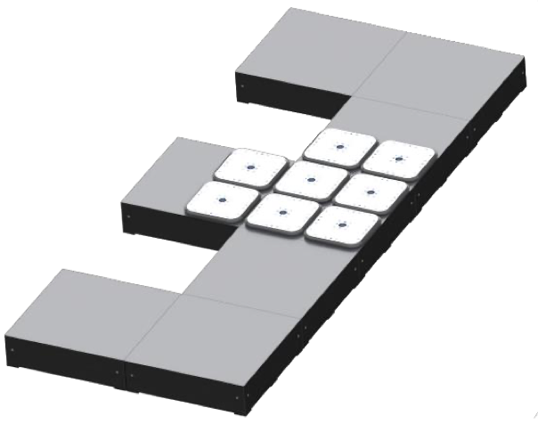 Another planar motor design uses a 2D coil matrix in the stator to produce 3D magnetic fields, which lift the tiles 1 to 5 millimeters above the stator surface. Because the tiles can “levitate,” this design is sometimes referred to as a “maglev” motor. The benefit of this planar motor design is that the tiles are completely passive — all the required cabling is connected to the stator, leaving the tiles free of the constraints of cables and cable management.