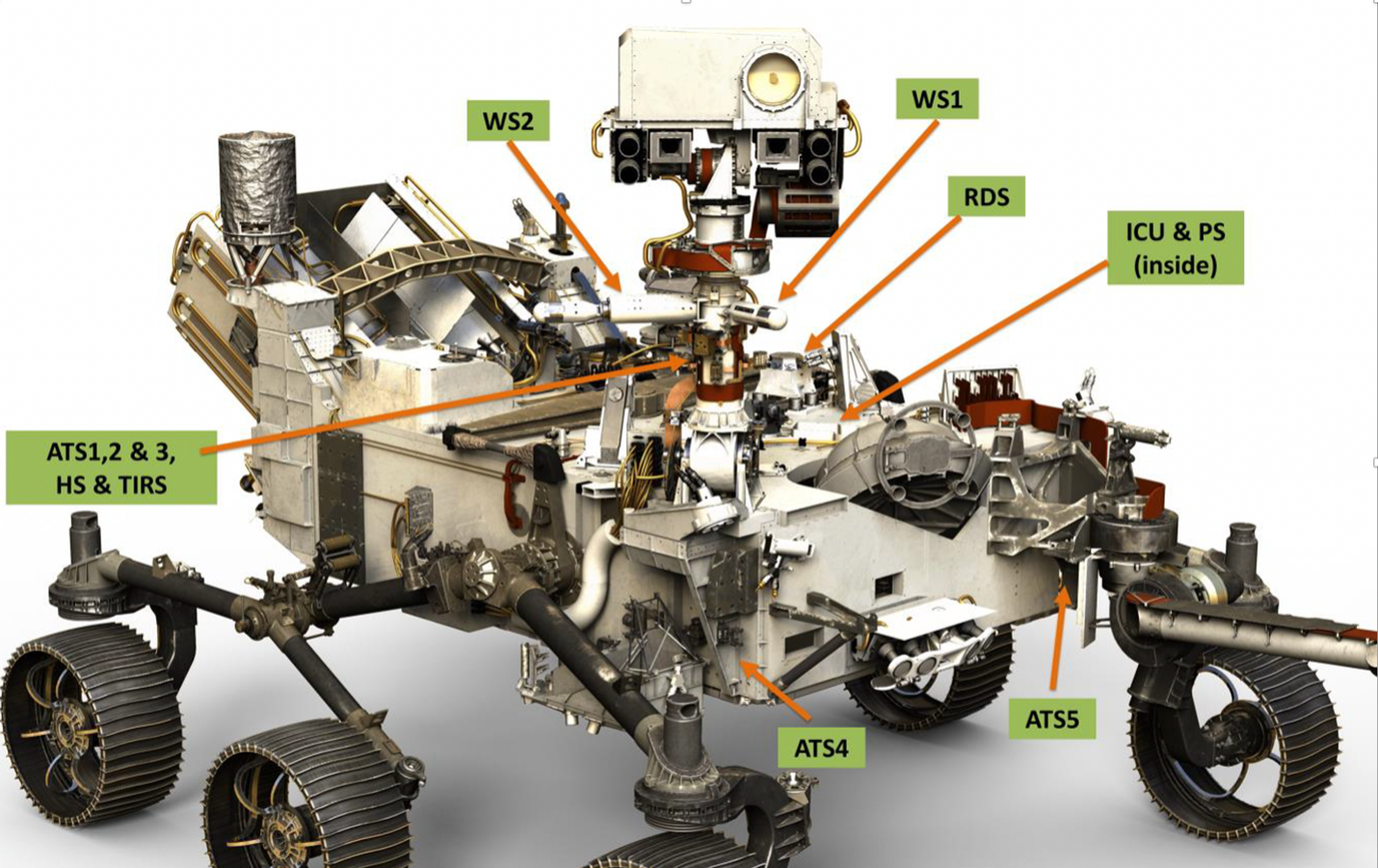 - 空气温度传感器,ATS(5个探测器:其中3个安装在RSM上,另外2个安装在探测车体前部)