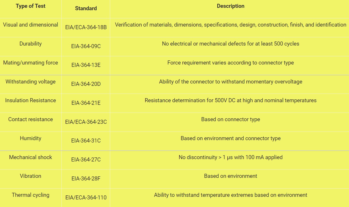 表2:这些是所有连接器类型所需的基本测试。某些连接器类型或应用程序类需要上面没有描述的额外测试。(表:节奏)
