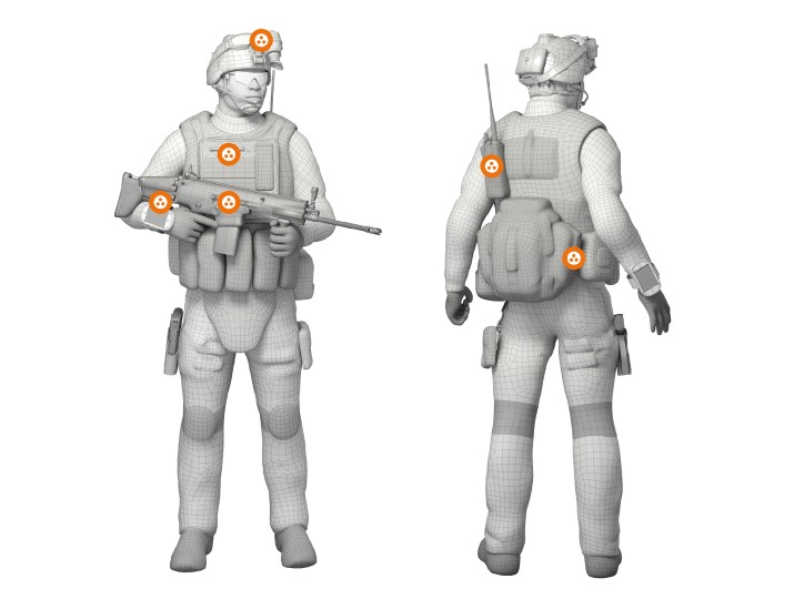 可穿戴设备正被用于提高士兵的态势感知能力,并改善士兵之间的协调能力。这些战士可穿戴设备中使用的连接器必须符合美国奈特勇士计划和欧盟/北约通用开放士兵系统参考架构(GOSSRA)计划的要求。“战士”可穿戴设备包括显示器和摄像头、软件可编程无线电、地理定位和导航、武器监控以及其他功能(图3)。