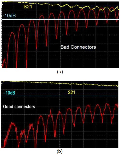 The criterion to decide good or bad in most specs is the -13dB point. A “good” connector has a return loss below -13 dB and will have minimal impact on the insertion loss and a “bad” connector will have a return loss larger than -13 dB. It may still work in the system, but you have to do your own analysis to determine if it is still acceptable. Usually, the frequency at which a connector’s return loss exceeds -13 dB defines the bandwidth up to which it is considered “transparent.”