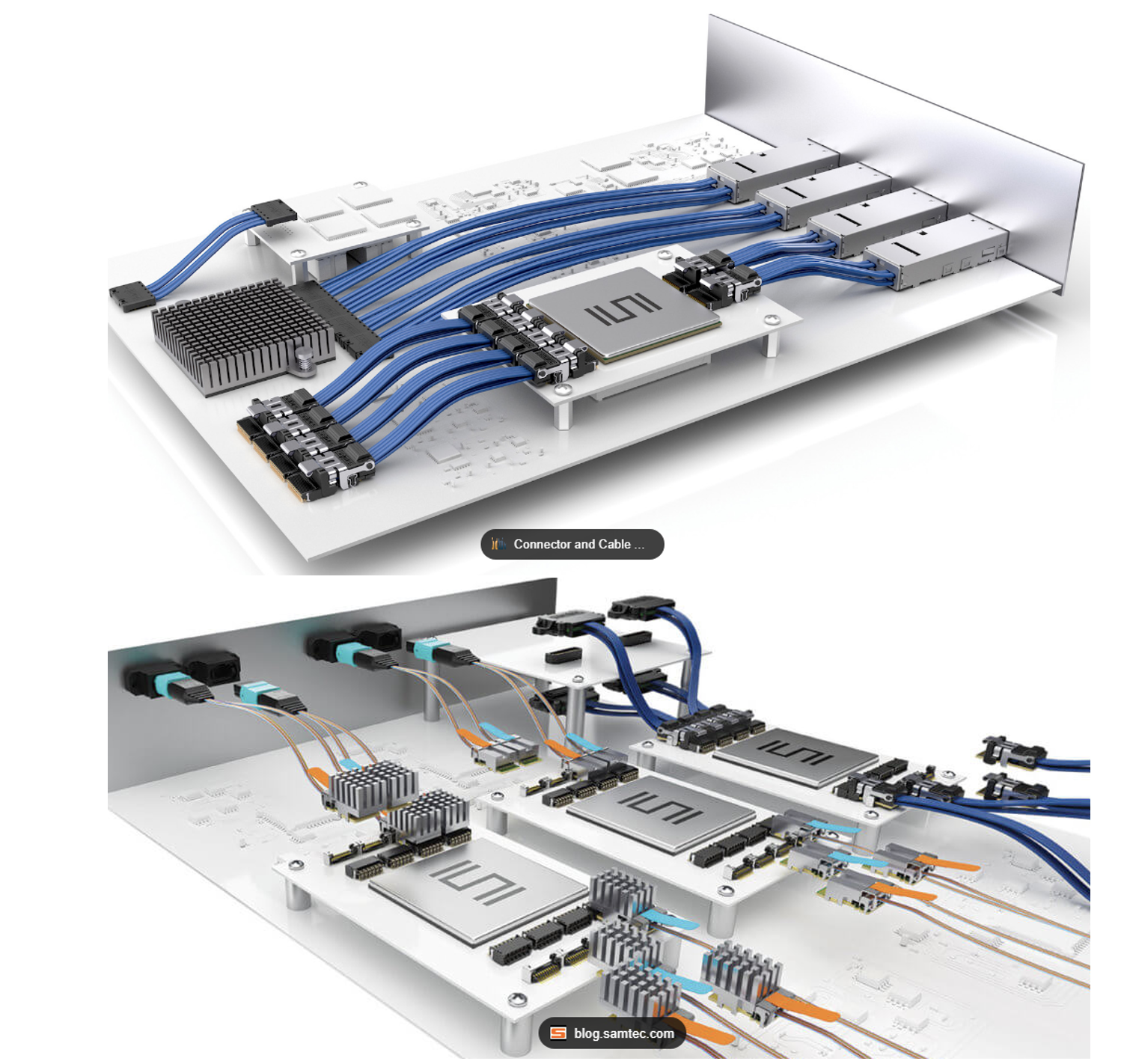 通常,内部电缆和连接器调优为85、92或100欧姆阻抗。这取决于接口规范,因为它们与PCIe和其他接口相匹配。此外,较老的QSFP28和较新的QSFP112插座连接器通常有显著的延迟、热电路和气流差异。