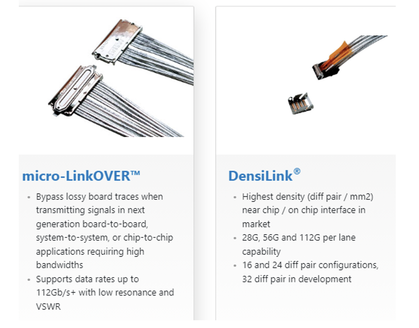 Chip-side连接在交换机附近或上面的连接器/电缆主要是专有的。开发100+G的电缆、连接器和电缆用于低调和高热应用,这是一个巨大的制造企业和资本支出和运营成本投资。这是因为这些产品有不同的长度、宽度、高度和深度,以及不同的接触间距网格和其他参数。