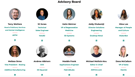 在过去的几年中,Wi3DP已经发展成为一个在全球范围内拥有超过30,000名成员的社区。顾问委员会包括来自Mantle、ASTM、Velo3D、3D Systems、Desktop Metal、MakerBot、Boeing、3D- squared、Fabric8Labs和3DPrint.com的世界级增材制造领导者