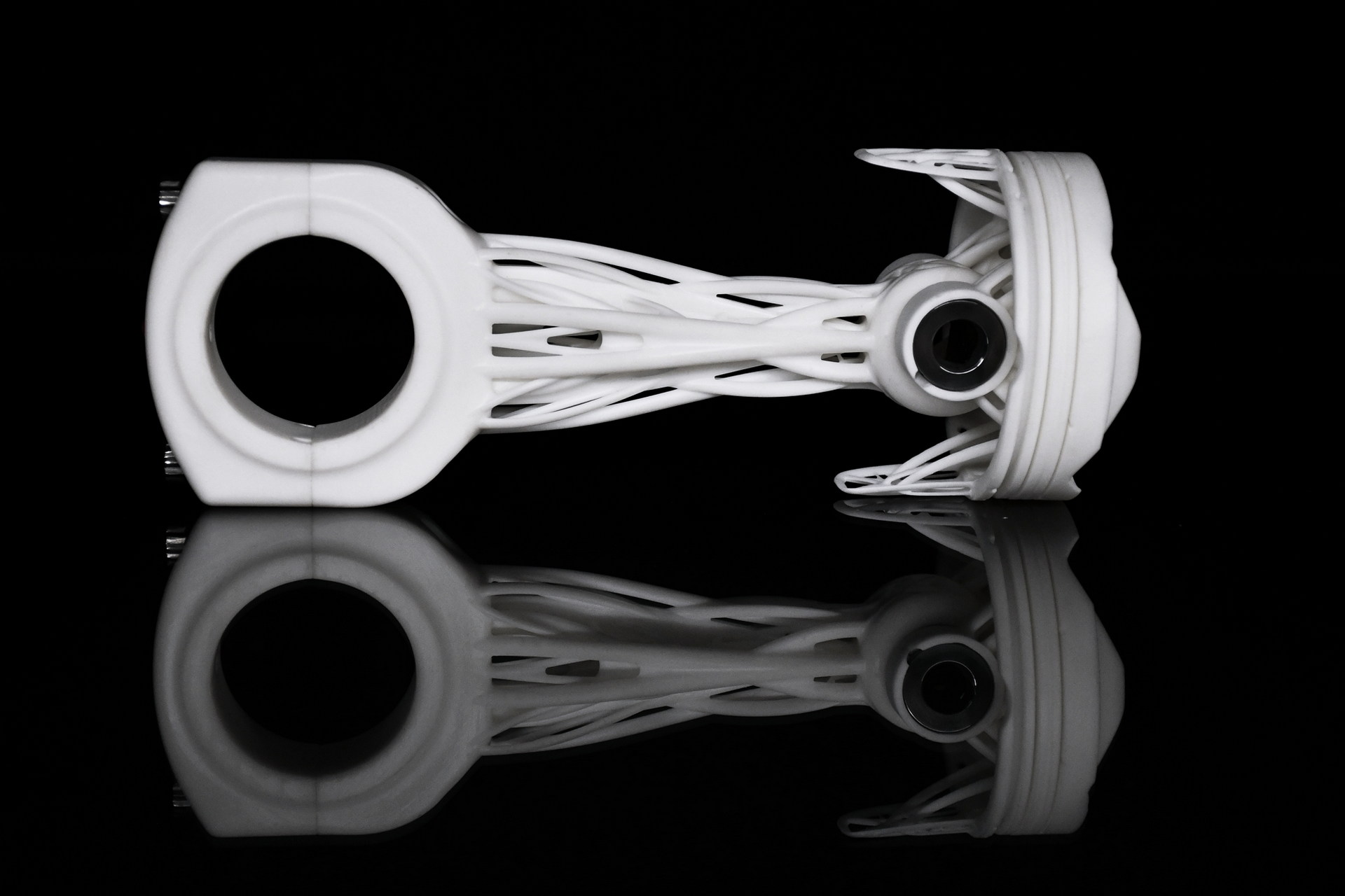 To make the engine a reality and support the extreme levels of performance required, the unique ‘anadiaplasi’ piston was designed. ‘Anadiaplasi’ is Spyros Panopoulos’ proprietary method of design for AM in which a component takes its shape based on the forces acting on it. Material is minimized where it doesn’t support performance and added where reinforcement is needed, optimizing weight while maintaining the strength and temperature resistance of the part – essential for any piston, but particularly testing in such a high-performing engine. The result is an organic complex shape that is light, yet strong. This technique is implemented throughout the Chaos Ultracar.